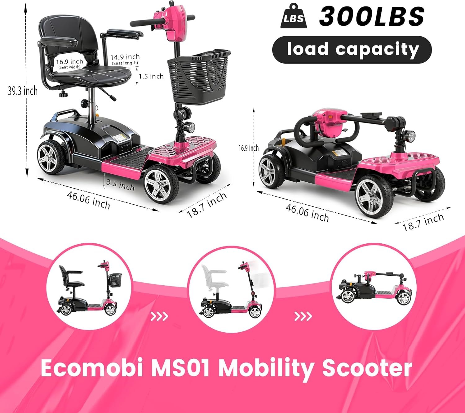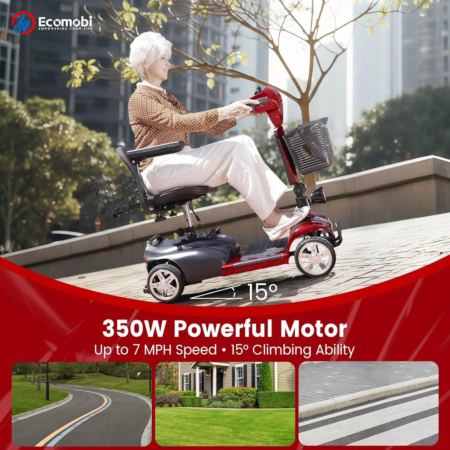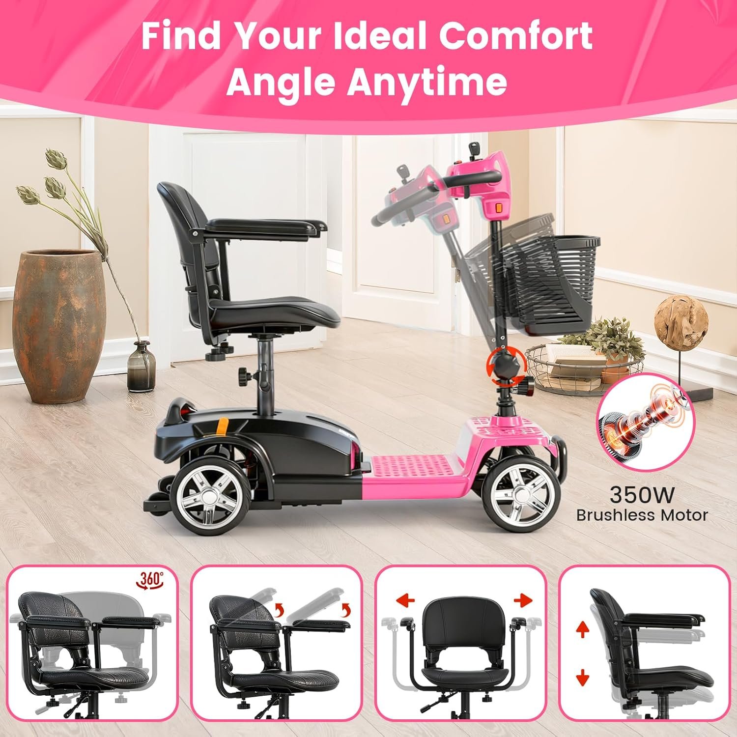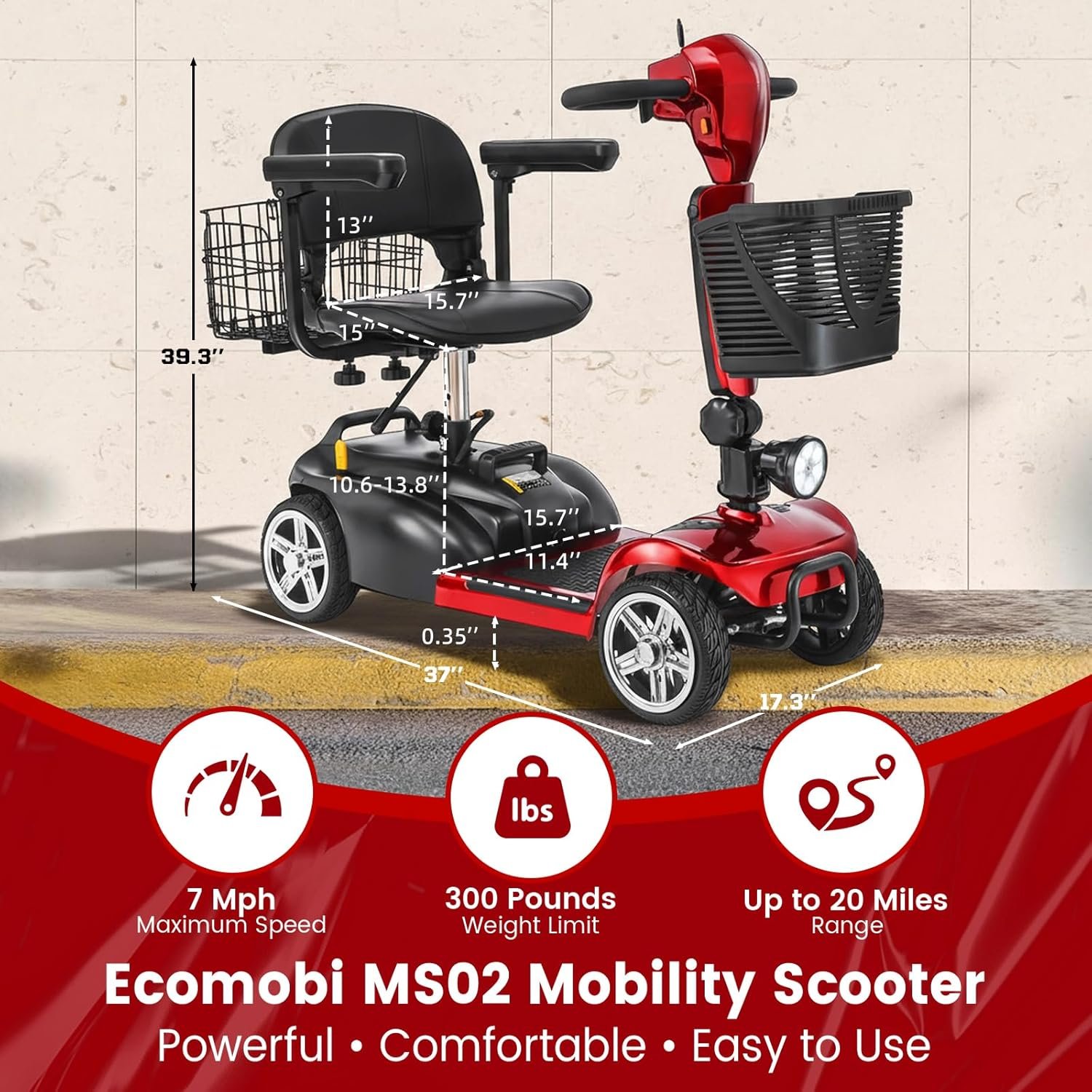 Powerful & Reliable Motor: 350W brushless motor delivers smooth acceleration; supports up to 300 lbs and top speeds of 7 MPH.