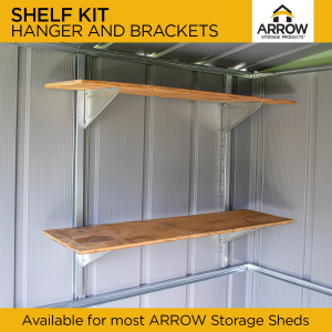 Add extra storage space with the Arrow Shelf Kit. This allows you to make shelves in your Arrow Shed. Hanger and Bracket Only, (Wood not Included) Item #SS404