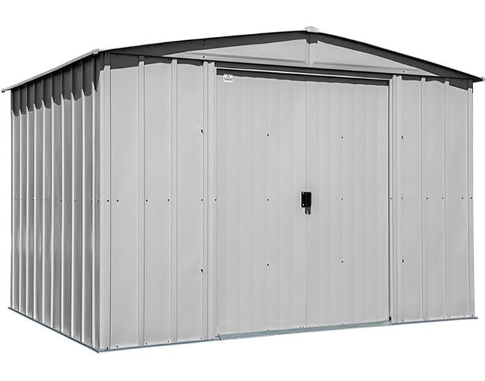 Looking for a low costing metal shed to solve your storage needs? You are in the right place! Introducing our Arrow 10×8 classic style steel shed kit. This 10×8 size shed is one of the most common sizes to solve storage needs for mowers, yard tools, garden supplies and more. Choosing steel material gives you a lower price point while also providing a solid structure that will last for many years. Arrow’s new technology using galvanized treated steel and Sherwin Williams polyester paint finish prevent corrosion and rusting over time from the elements. Slide open doors give you easy access and padlock loop handles allow you to lock things up for security. And not to mention this shed is great looking! The flute gray color and sleek design will inspire your neighbors and enhance your backyard.
