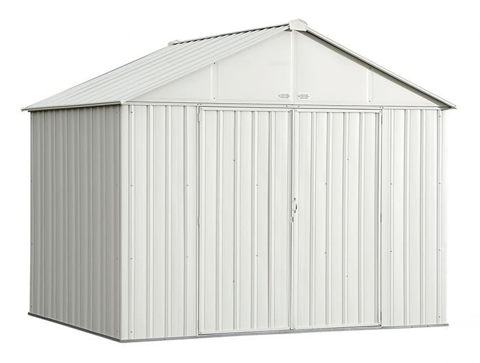 Introducing the EZEE Shed from Arrow Storage Products a shed that builds in half the time. The EZEE Shed is a galvanized steel shed that is durable and made to last. It features the revolutionary Snap-IT Quick Assembly system that cuts assembly time down by 50% compared to most steel sheds on the market today. The EZEE Shed has a reduced number of fasteners across walls, roof, and doors so assembly is faster and easier! The EZEE Shed features a design that is 2x stronger than leading steel sheds on the market. Its unique panel geometry is more impact resistant, and with its overlapping Snap-IT panels that connect every 12 in., it boasts a stronger overall building design. The EZEE Shed also features improved roof assembly that allows for ground assembly of the roof for easier and faster roof attachment. The EZEE Shed is not only a tougher shed with faster assembly, it’s a more modern and attractive take on outdoor storage sheds, too! The EZEE Shed is available in an updated color pallet that makes it a modern and stylish storage solution for backyard, patio, and garden areas. The EZEE Shed doesn’t just look better; it offers better storage space, as well. The EZEE Shed’s attractive swing door design allows for easier access to your items and features a heavy duty framed out design. The doors are set on 3 hinges for extra durability. The EZEE Shed is a strong and modern alternative to your standard backyard shed, and the next step up in steel shed assembly and design.