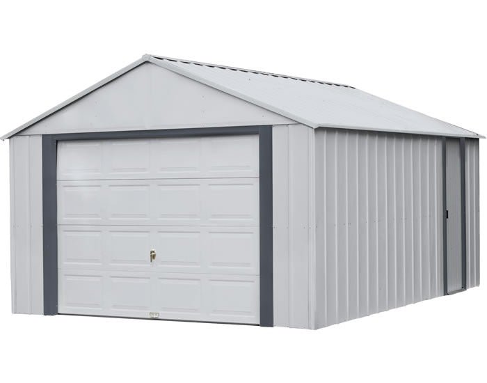 Need a warranty? It’s included! This storage garage comes standard with a free 12 year limited warranty included so you can rest assured you have a great building that will last. If you have a problem later simply open a warranty claim to help resolve virtually anything you need! Did we mention how great this building looks? The paint finish is a flute gray color on the walls, roof and doors with a dark gray (anthracite) color on the trim borders. These great colors blend well with most any surroundings and will beautify your backyard or parking areas! Now that you’ve selected this building get ready to save a ton over building a wood structure and also get ready for easy assembly! All of the parts for this shed are pre-cut and have pre-drilled holes ready for you to assemble quick and easy. You’ll just need common household tools to erect this building. You’ll want a cordless drill to help get done even quicker! What are you waiting for, get started by ordering now and get your do it yourself project going to get all the benefits you deserve. Available in six sizes from 12’x10′ to 14’x31′.