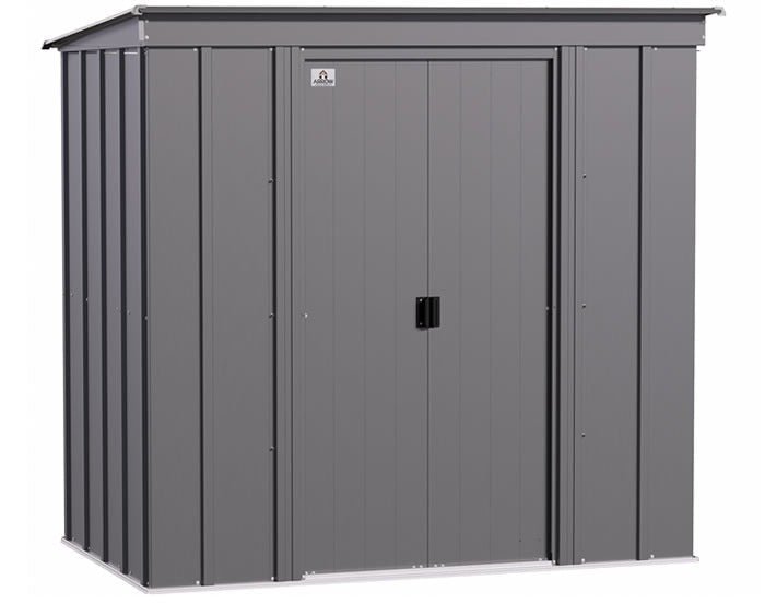 Looking for a low costing metal shed to solve your storage needs? You are in the right place! Introducing our Arrow 6×4 classic style steel shed kit. This 6×4 size shed is excellent for shed applications along a wall or fence and great for smaller storage needs for mowers, yard tools, garden supplies and more. Choosing steel material gives you a lower price point while also providing a solid structure that will last for many years. Arrow’s new technology using galvanized treated steel and Sherwin Williams polyester paint finish prevent corrosion and rusting over time from the elements. Slide open doors give you easy access and padlock loop handles allow you to lock things up for security. And not to mention this shed is great looking! The charcoal gray color and sleek design will inspire your neighbors and enhance your backyard.
