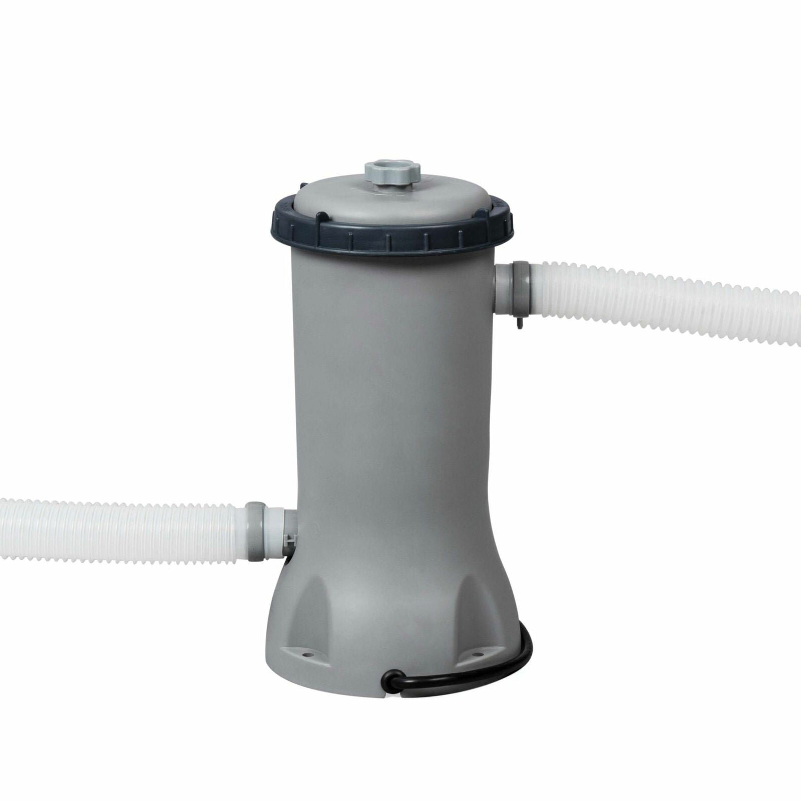 - Set includes a 530-gallon filter pump, a ladder for safe entry and exit, and a convenient, secure pool cover