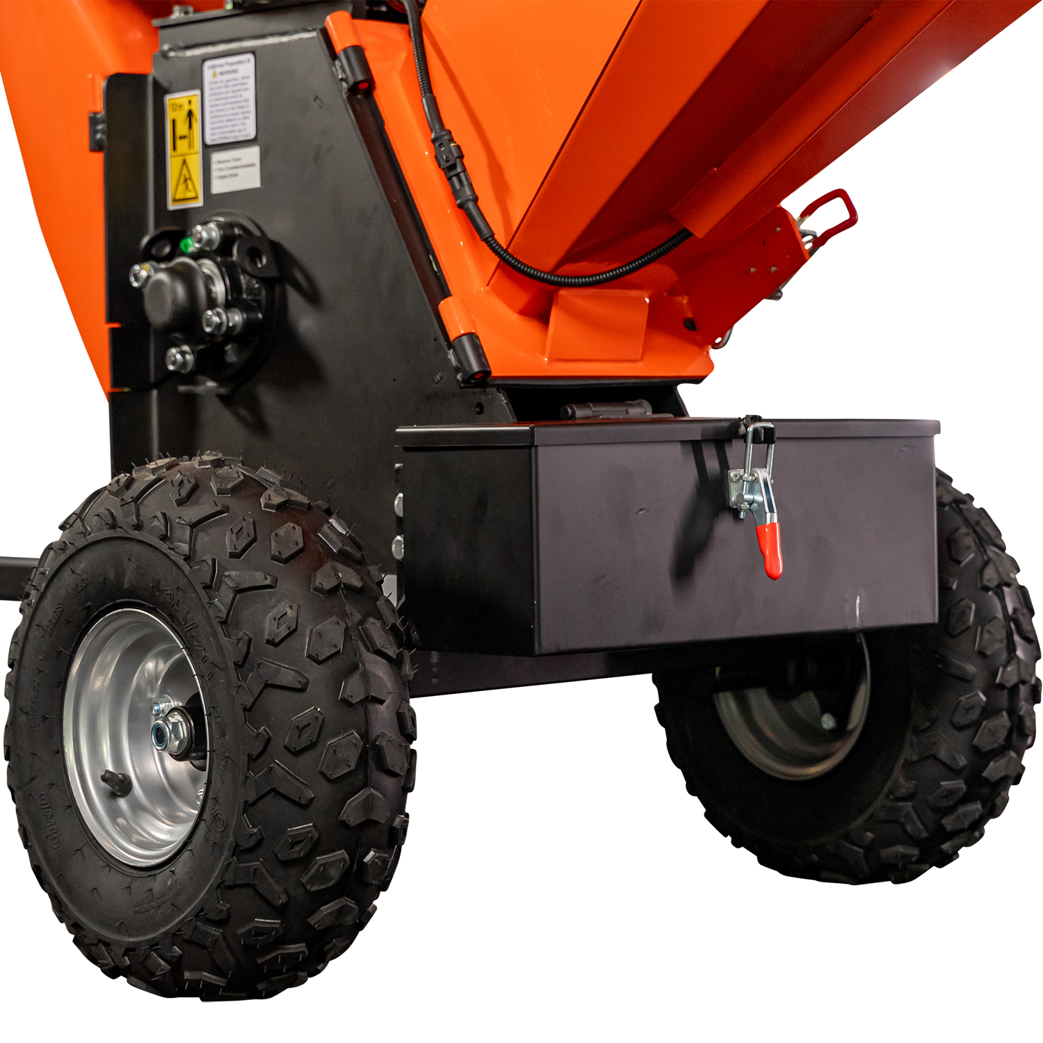 The OPC525 5-inch kinetic chipper is powered by, what has become an industry standard, KOHLER® Command PRO® CH395 9.5HP 277cc engine. This unit features dual swing chutes, double-edged, reversible high-speed cutting blades, an extended load chute with a safety e-stop, bearing-mounted ATV tires and rims, and includes a built-in toolbox!