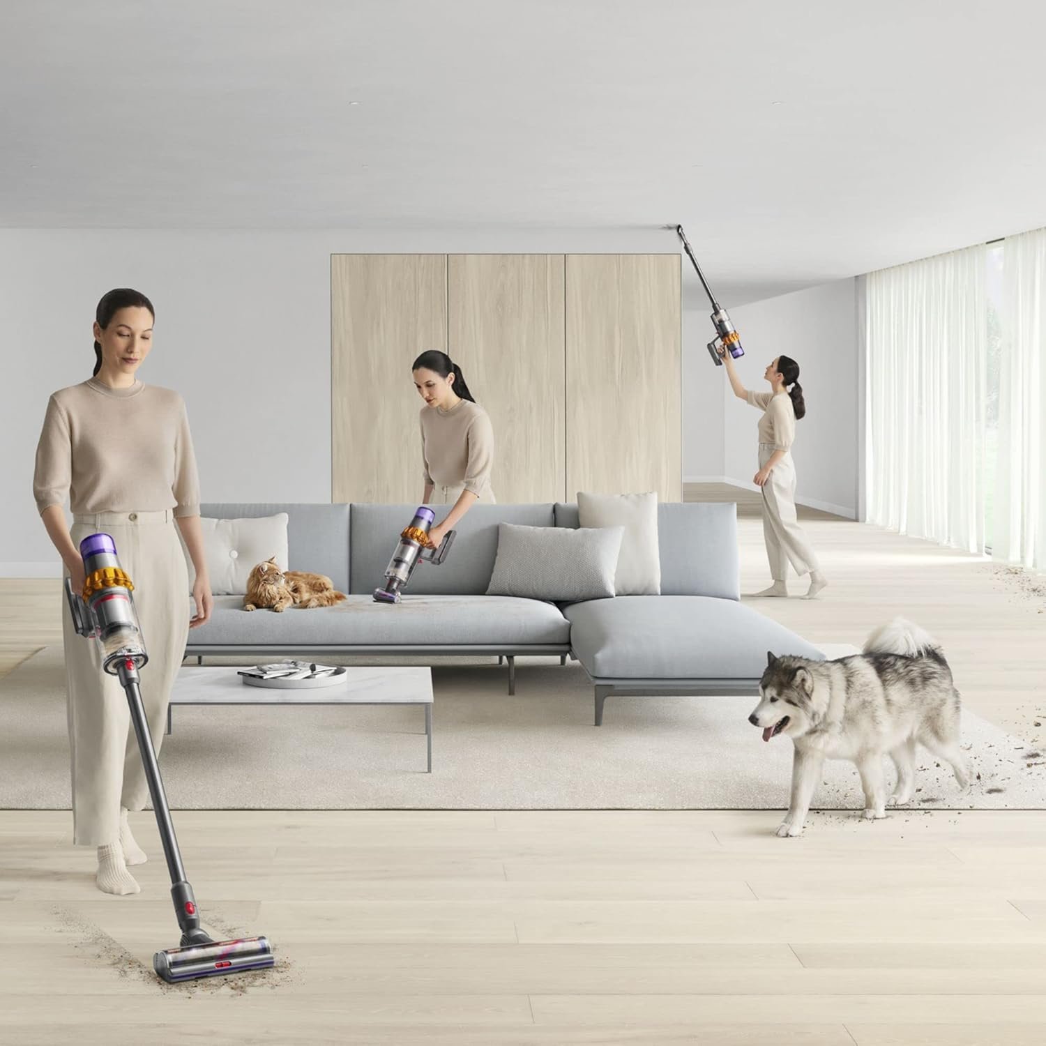 The Dyson V15 Detect Total Clean Extra is engineered with the power, intelligence, versatility, and run time to deep clean your whole home. Dyson illumination reveals invisible dust on hard floors. A piezo sensor intelligently optimizes power and run time based on the debris picked up, reporting it all on the LCD screen.³ The de-tangling Digital Motorbar™ cleaner head deep cleans carpets and hard floors and adapts suction power to floor type. Its versatile cordless format transforms into a handheld vacuum with one click so you can clean up high, down low, and everywhere in between. Comes with a 6 month warranty and lifetime Dyson support.