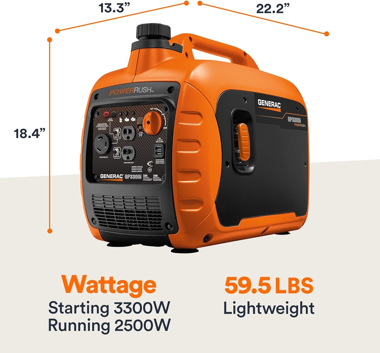 Generac 3,300-Watt Gas Powered Portable Inverter Generator – Lightweight and Compact