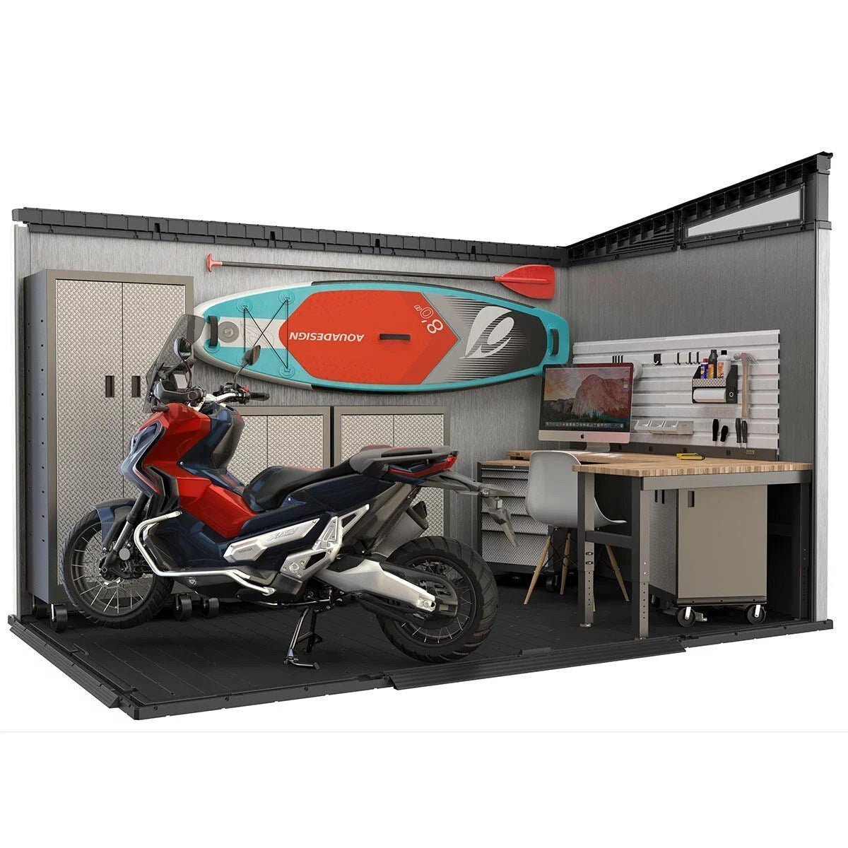 A perfect blend of modern design and ruggedness, the cleverly architected Artisan 11ft x 7ft shed provides the ideal outdoor storage solution for your garden. The innovative DUOTECH™ walls are not only highly durable and weather resistant, but they also feature an attractive wood-like texture and paintable surface.