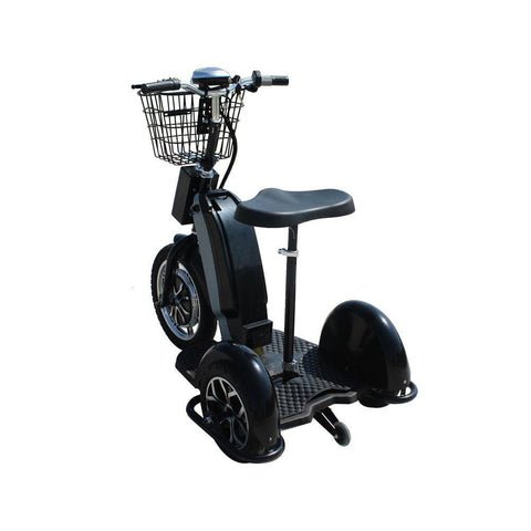 Cruise the streets, roam vast indoor areas, cut your commute, and go to work or school with the MotoTec 48V Three Wheel Electric Scooter. Get to speed with its powerful 800-watt electric motor. Try this for a fun and exciting commute to work or school. The motor is installed inside the front wheel hub, which has the advantage of being mechanically simpler, provides torque directly to the wheels, and protects the motor from the elements. This mobility scooter is available in a beautiful black finish.