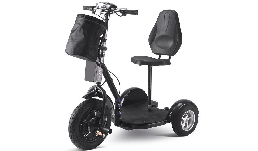 The MotoTec 1000 Watt Electric Powered Trike aka Personal Transporter is a three wheel electric scooter that you can ride while sitting or standing, this makes it very convenient for use at events, security and warehouse floor operations or for just plain fun! It’s like a three wheel Segway but at a fraction of the price! Powered by a 1000 watt front wheel hub motor with speeds up to 28 miles per hour. It can achieve a 20-25 mile range on a full charge with it’s light weight Lithium Battery Pack. It features a 16″ pneumatic front tire, two 12″ pneumatic rear tires, a removable seat with backrest. This personal transporter is easy-to-operate with a twist throttle and front drum brake. Comes standard with key, foot pegs, battery meter, front LED head light and carrying basket.