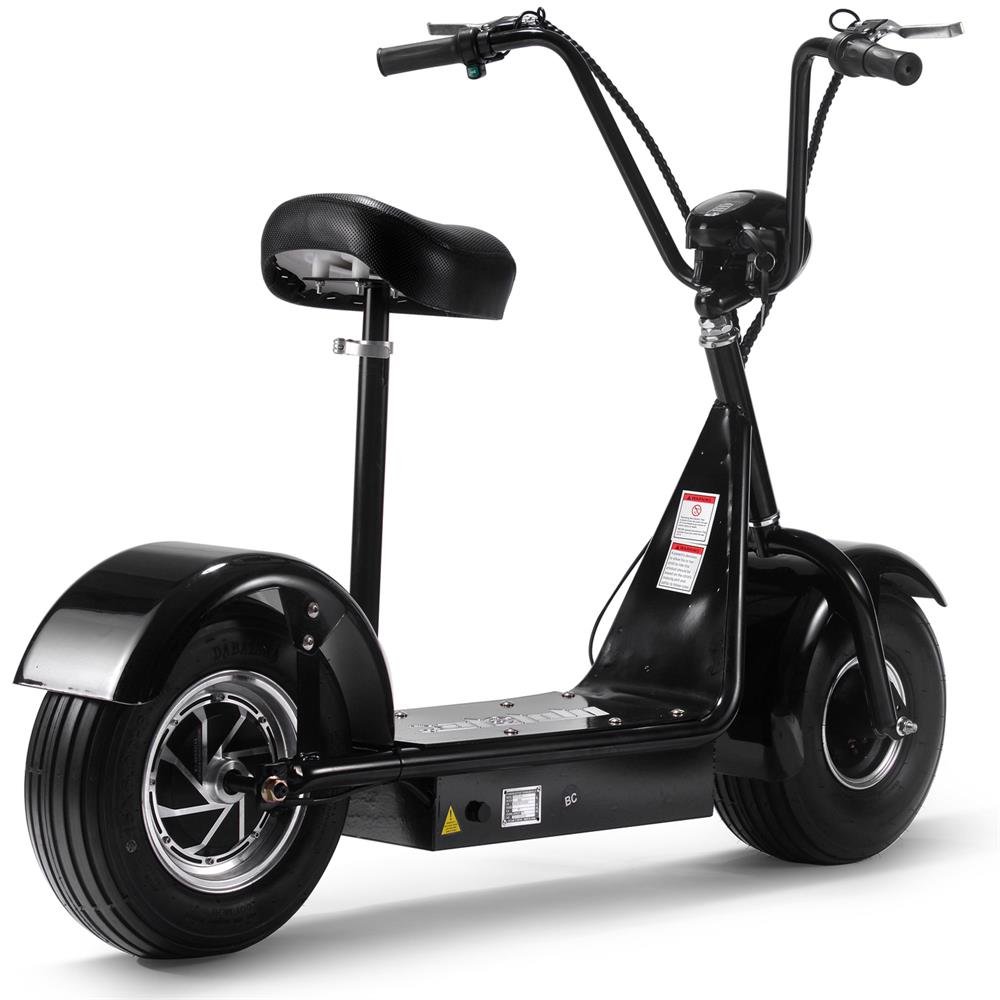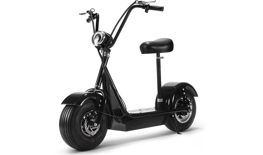 The MotoTec FatBoy 48v 800w Electric Scooter MT-FatBoy-500 (aka the MotoTec Big Wheel and Fat Tire) packs an insane amount of fun into an economical package. Whether you’re riding for transportation or fun-filled adventures it gets you there in style. It sports a 48v battery system that takes you up to 15 miles on a single charge. The extra-wide cruiser handlebars allow for easy turning and the optional seat kit lets you cruise while standing or sitting down. The thick tires let you tackle all sorts of terrain while providing a smooth and steady ride.