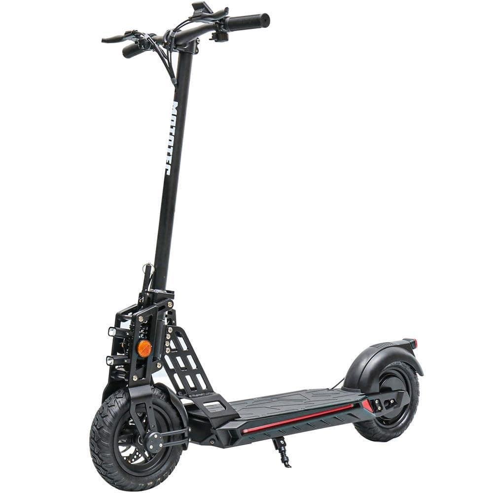 The MotoTec Free Ride Electric Scooter is perfect for commutes and short trips to work or school. This scooter has a durable and lightweight frame, plus a front suspension that makes it comfortable to ride. When folded, the scooter measures only 44” L x 9” W x 18.8” H when folded. Also, it only needs small storage, so it is ideal for apartments or dormitories where space is tight.