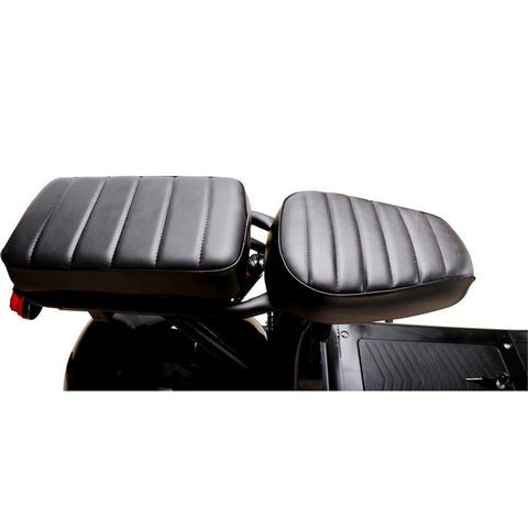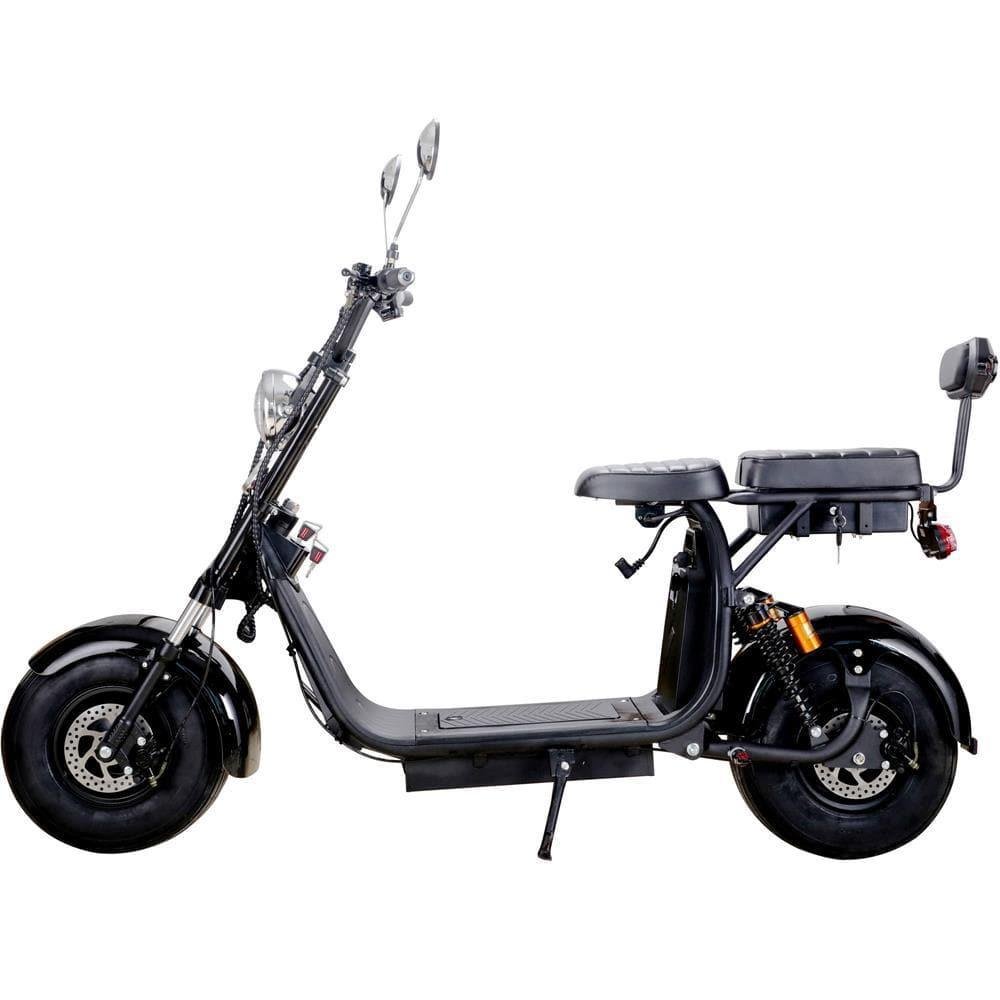 This electric scooter is very comfortable, featuring a low platform and a long wheelbase plus a very comfortable padded seat. It comes with a full suspension with a front fork and two air coilovers on the rear for optimum performance on the road and on the dirt. The scooter has a range of around 60 miles, so you can go on lengthy off-road adventures or road trips. The MotoTec Knockout Fat Tire Scooter is a great choice for a daily ride to work or school.