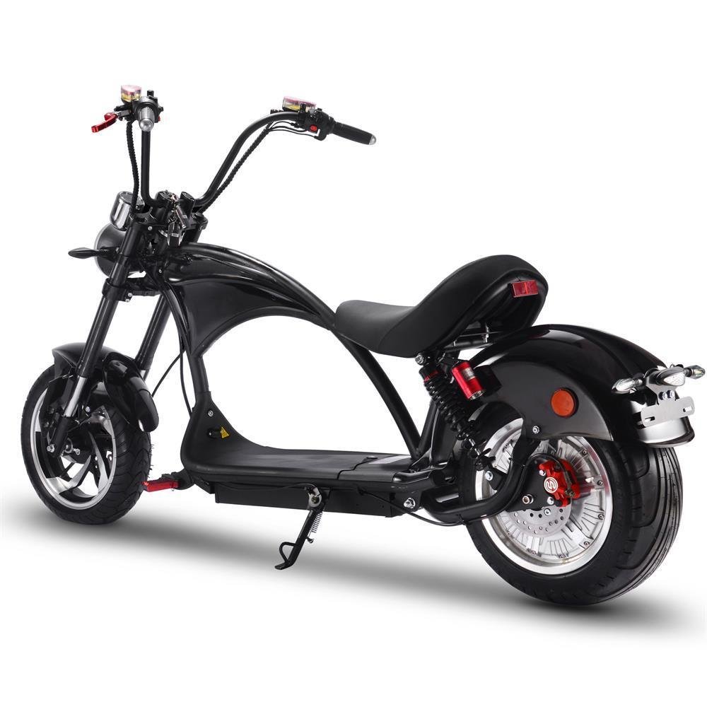 The MotoTec Lowboy 60v 20ah 2500w Lithium Electric Scooter is a powerful ride. At 2500 watts. A 60 volt 20ah Lithium Battery takes the scooter up to 38 miles on a single charge.