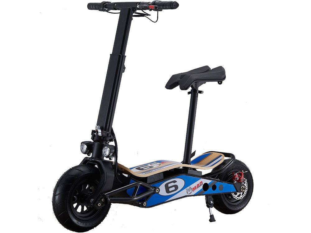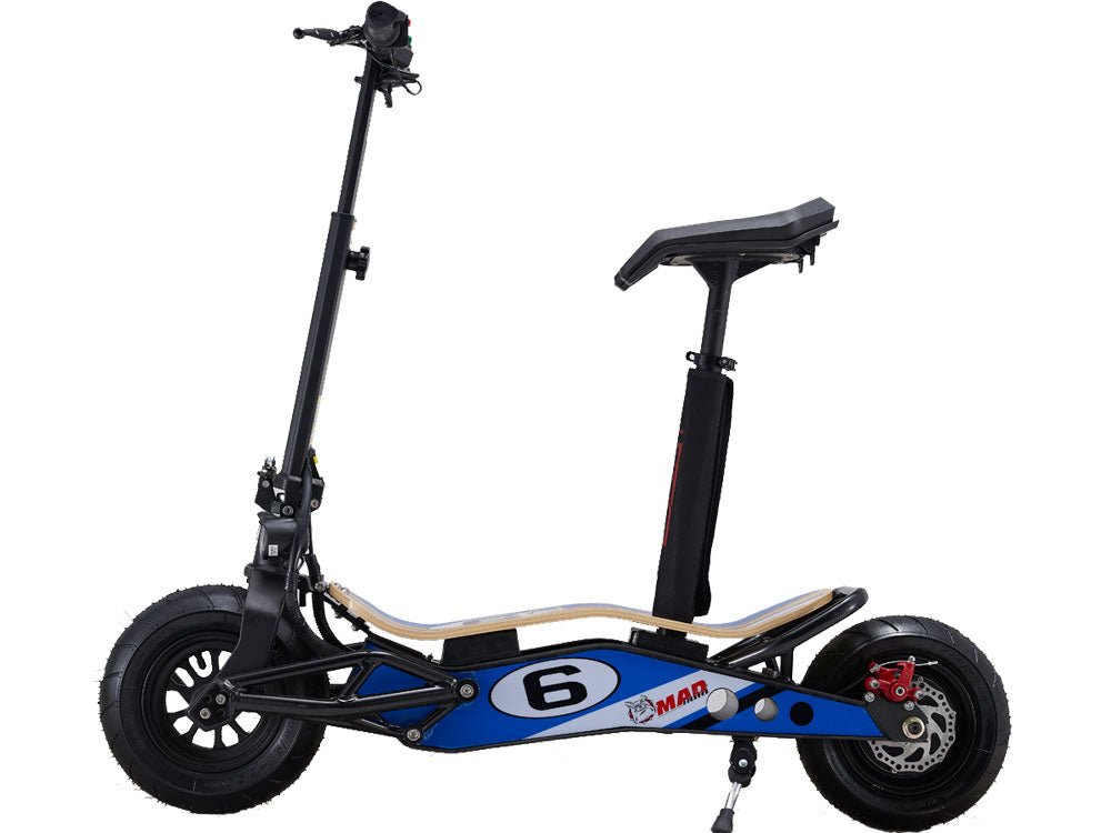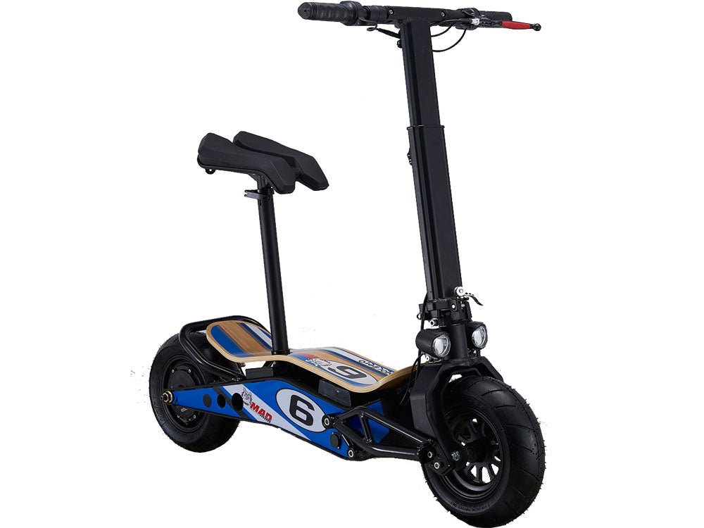 Introducing the new MotoTec MiniMad 36v 800w Lithium Electric Scooter, foldable with a new modern and elegant design. MAD, the new VELOCIFERO, is an example of how a bright idea turns into a successful product. Ergonomic shapes and large wheels will be part of each path.Designed by Alessandro Tartarini, one of the top 100 industrial designer in the world. An exceptional cross between a mini-scooter and an electric bike, with very original styling: the bamboo footrest echoes the latest generation of skateboards, the large tires give it a sports look, the colors and sticker design make it a product with a strong personality.