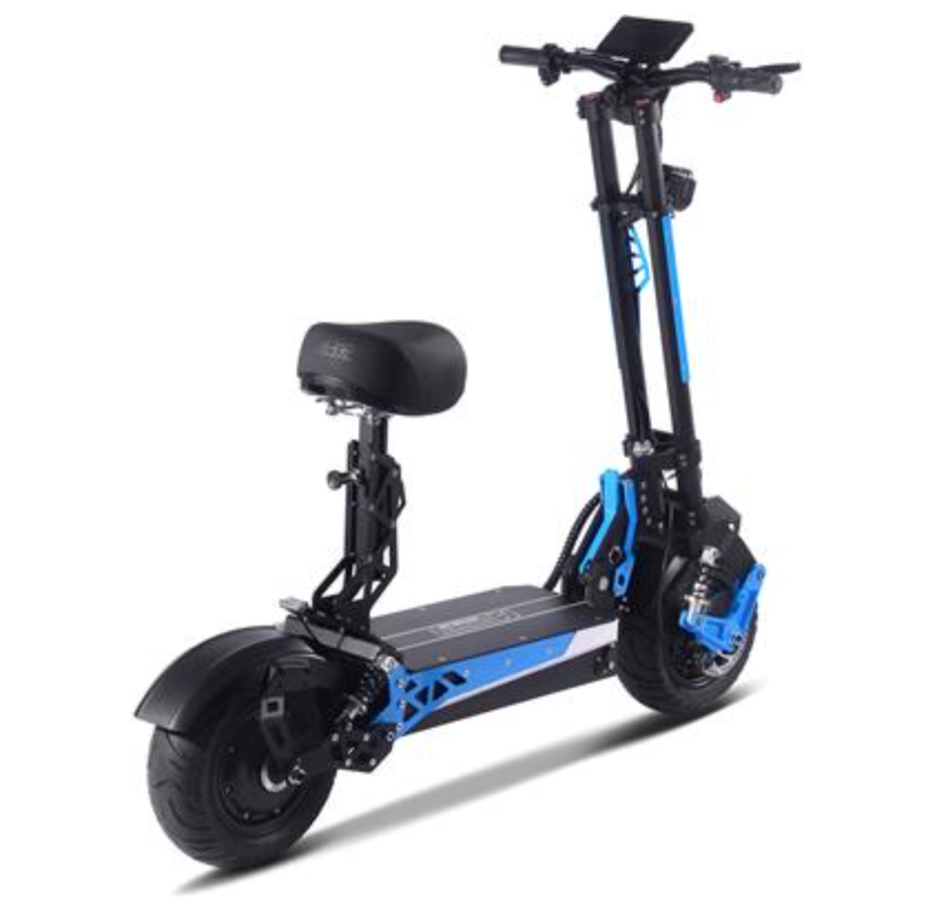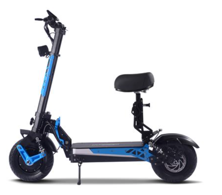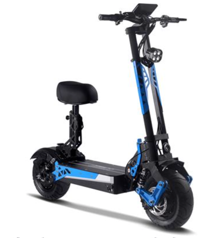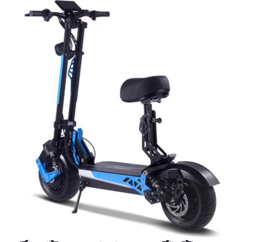Introducing the most high-tech scooter we sell, the MotoTec Switchblade 60v 4000w Dual Hub Motor Lithium Powered Electric Scooter, foldable with removable seat and a new modern design. Ergonomic shapes, highly padded seat, LED headlight, LCD screen, front and rear suspension with large street tires give this scooter a lot of attitude. This top of the line model features dual hub motors with generous torque and performance, ready to tackle any terrain.