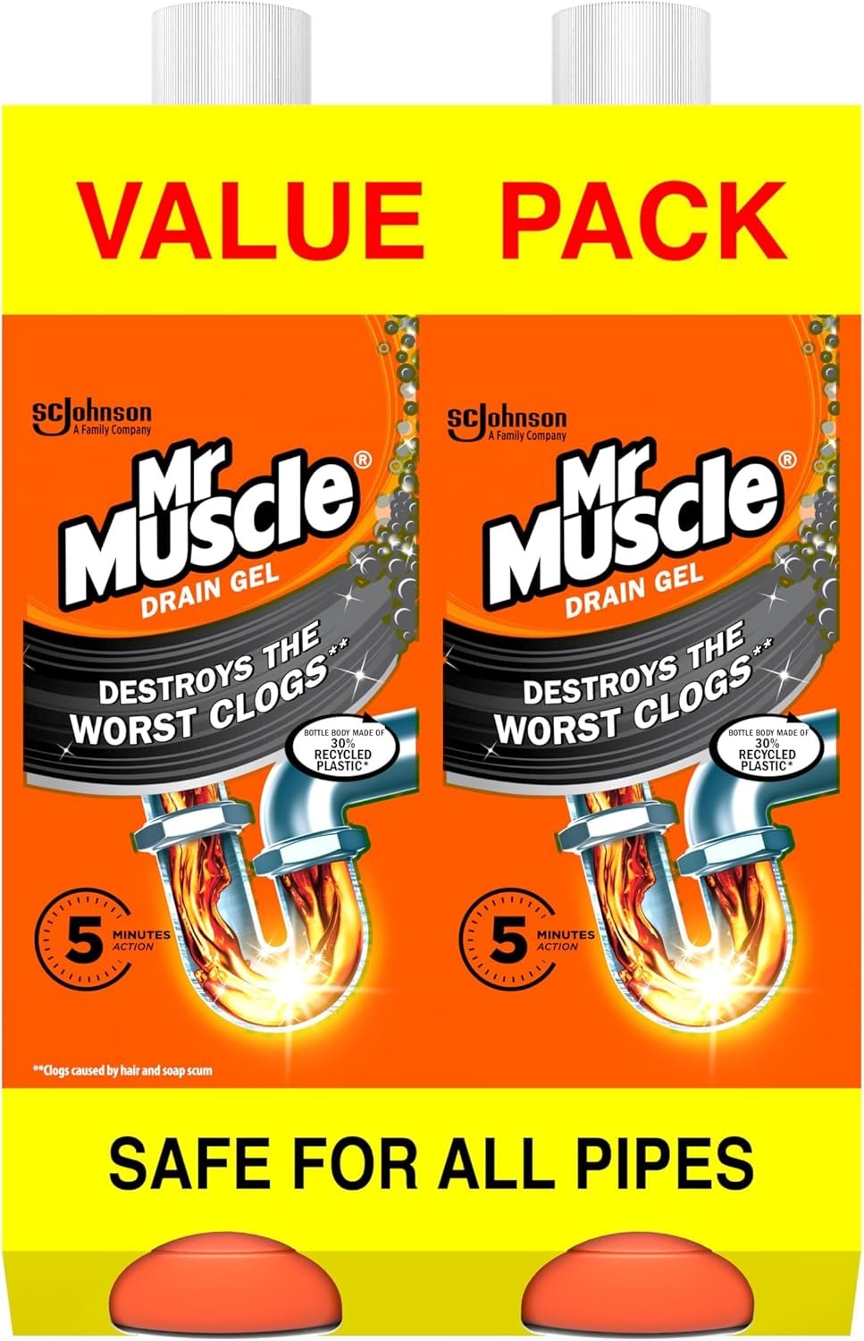 Mr Muscle Drain Unblocker is a fast-acting, heavy-duty gel formula designed to quickly and effectively dissolve stubborn clogs in sinks, drains, and pipes. With its powerful cleaning action, it works three times better than bleach to ensure your drains stay clear and free-flowing.