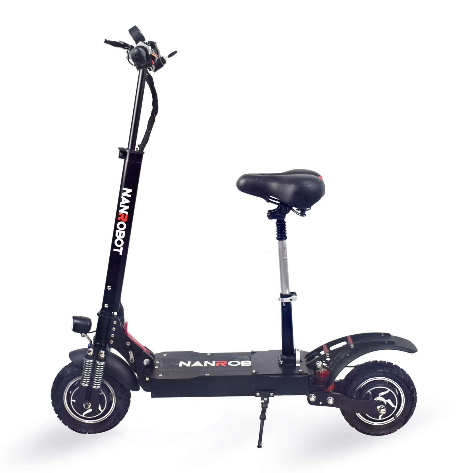 The Nanrobot D4+ 2.0 2000W Lithium Powered Scooter has arrived at epciwheelz.com! This scooter with it’s brushless gear motor has all you’ll need to power you need for any type of ride. You can get around easily with it’s unqiue folding system, durable battery life, reduced vibration, off road tires and high powered lithium battery.