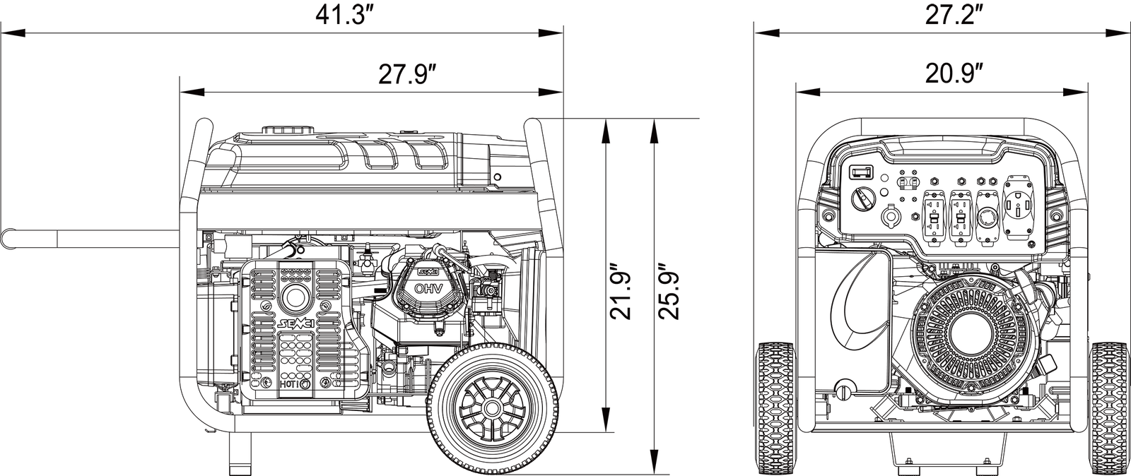 Featuring a convenient push-button electric start system for quick and easy use, the unit has rubber outlet covers to help guard against moisture, dust, and debris and heavy-duty frame construction with a durable powder coat finish. The generator is easy to transport with a folding handle and wheels and the CO sensor with automatic shutdown monitors and reacts to carbon monoxide (CO) levels.