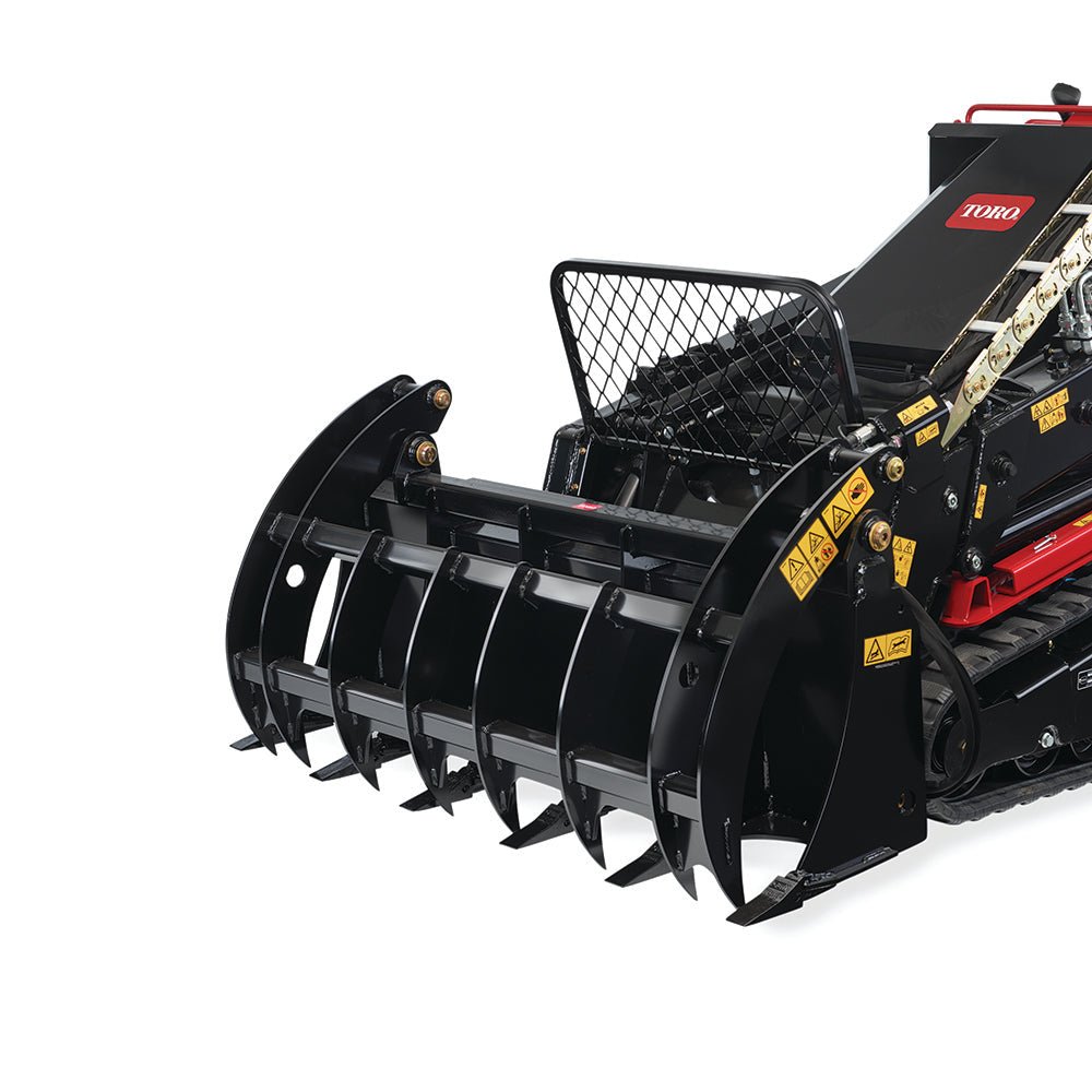 Dig, rake, pile and load debris with this grapple, which features a 40” jaw opening to haul large amounts of brush in each load. The unique design allows efficient forward and reverse operation to drag loose material into piles. For maximum durability, the heavy-duty jaw and rake tines are constructed from 3/8″ Grade 80 steel.