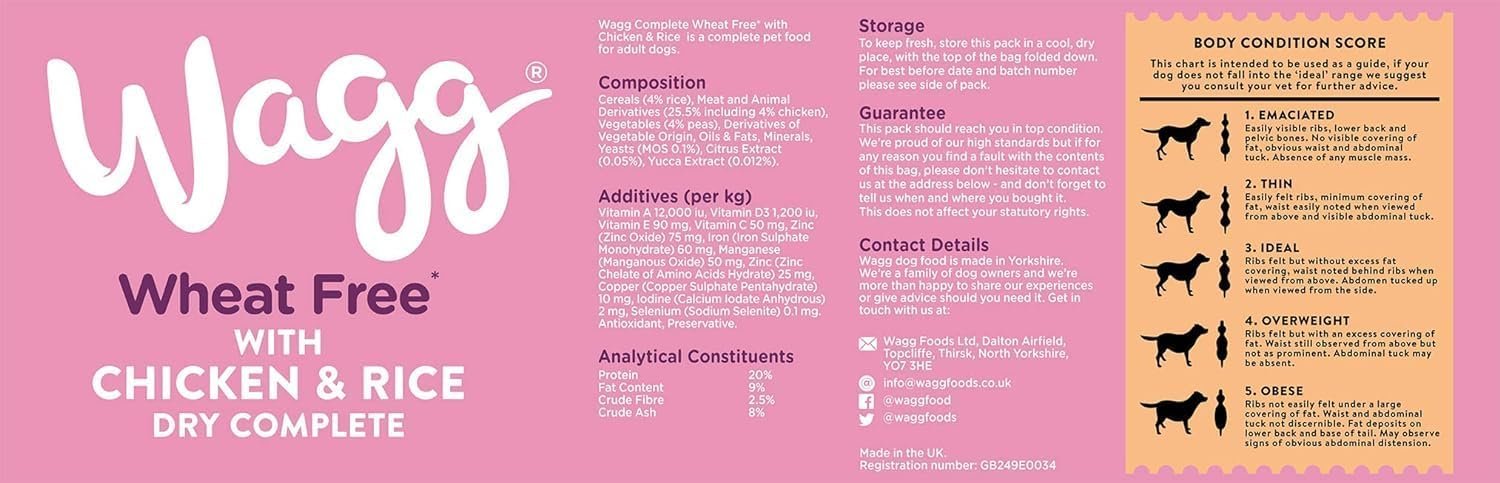 Wagg Wheat Free Complete Dry Adult Dog Food Chicken & Rice 12kg – For Sensitive Stomachs