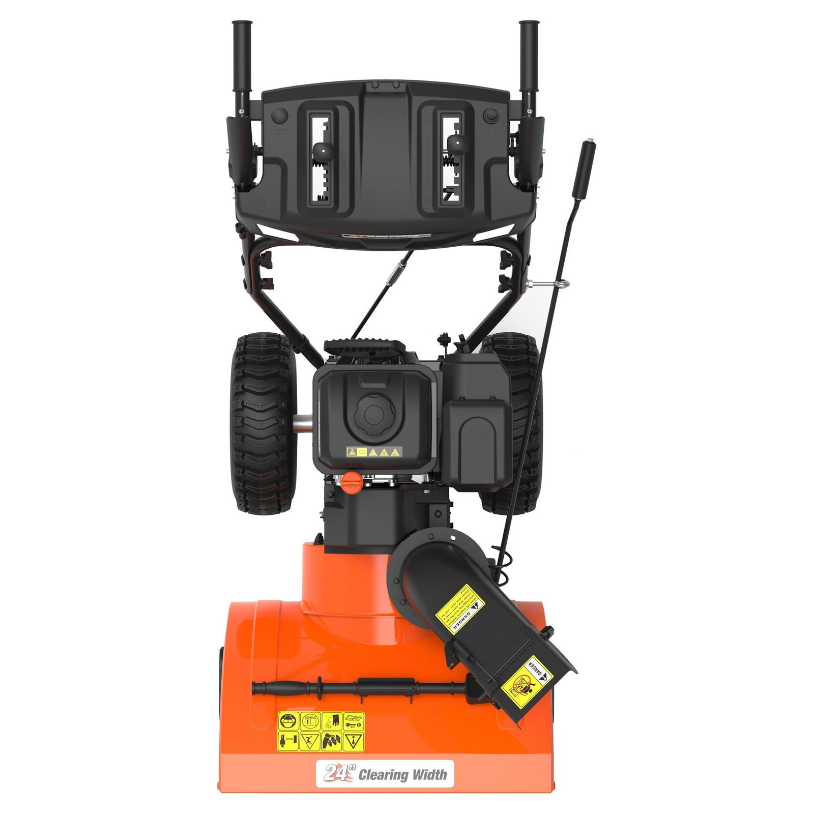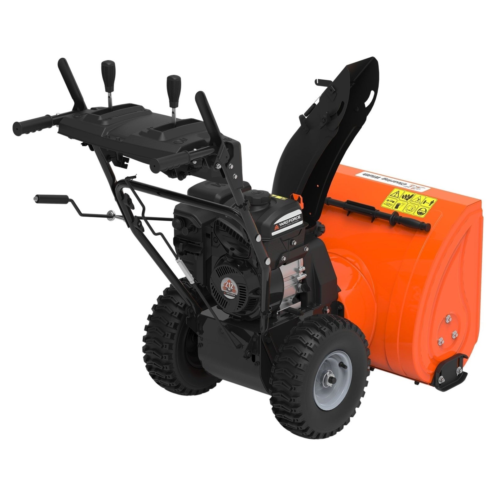 Clear snow from your property with ease with this Yard Force 24″ two-stage gas snow blower. It features electric and manual start and clears snow up to 21″ deep in a single pass. With four forward speeds and one reverse, this snowblower is designed to tackle the biggest snow piles. The chute direction handle is controlled under the dashboard by a geared handle for quick and easy adjustments on the go. The SuperBrite™ LED light mounted high on the control panel lights the way at night to create a safe operating environment.